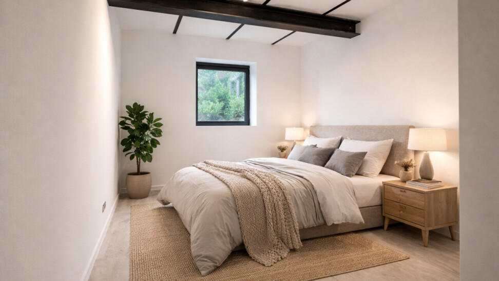 Verder beschikt het appartement over twee volwaardige slaapkamers en een ruime badkamer, uitgerust met een douche en een stijlvol badkamermeubel.