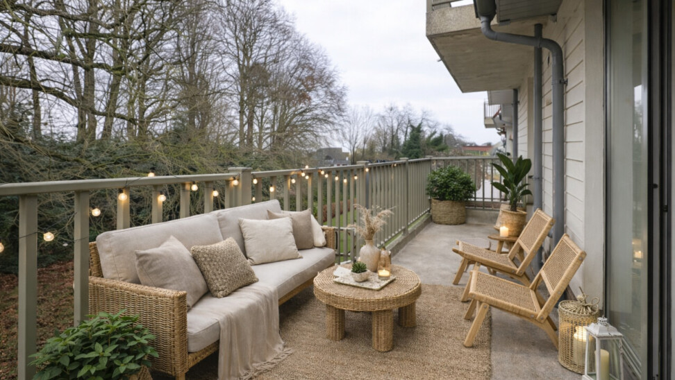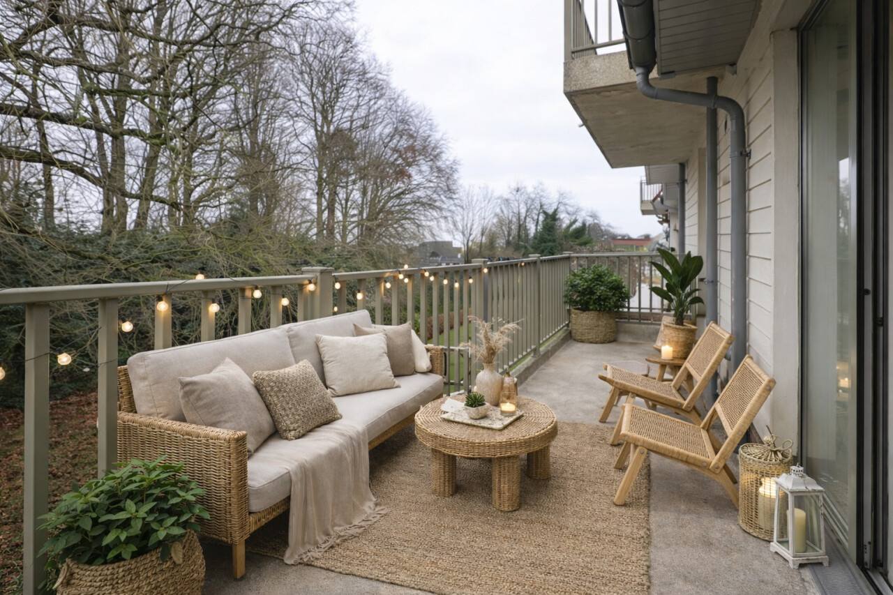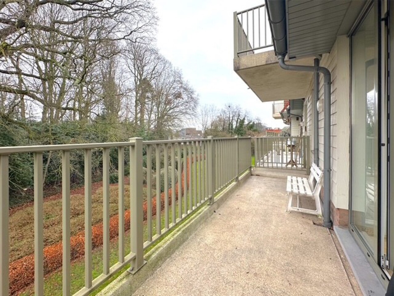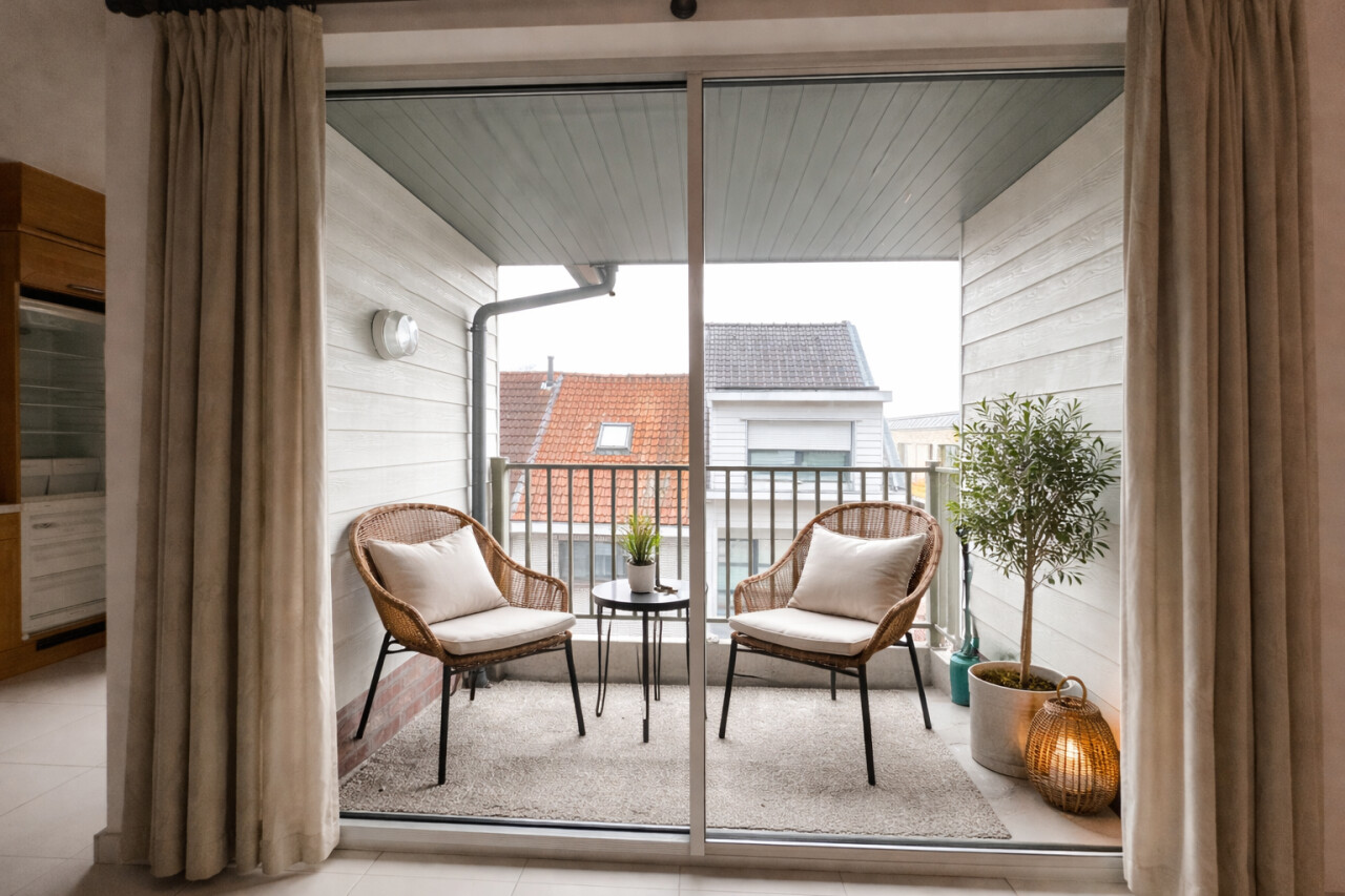 Terras 1: 5m² op silexbeton, overdekt en voorzien van een lichtarmatuur
