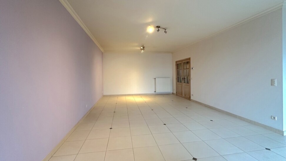 Woonkamer: 21m² op tegelvloer, toegankelijk vanuit de inkomhal via een dubbele deur, toegang tot terras aan de straatzijde