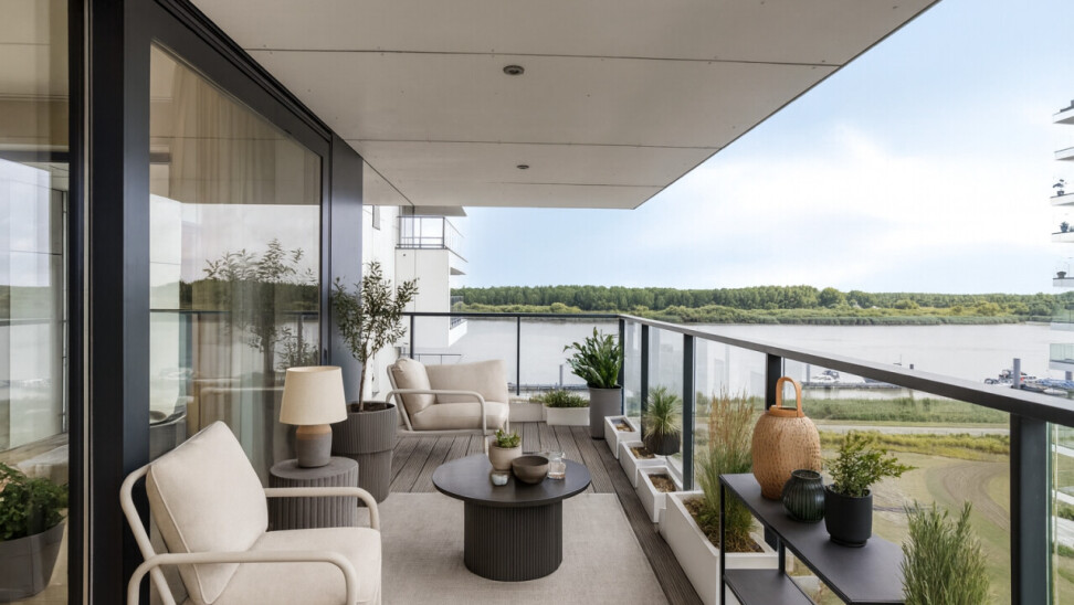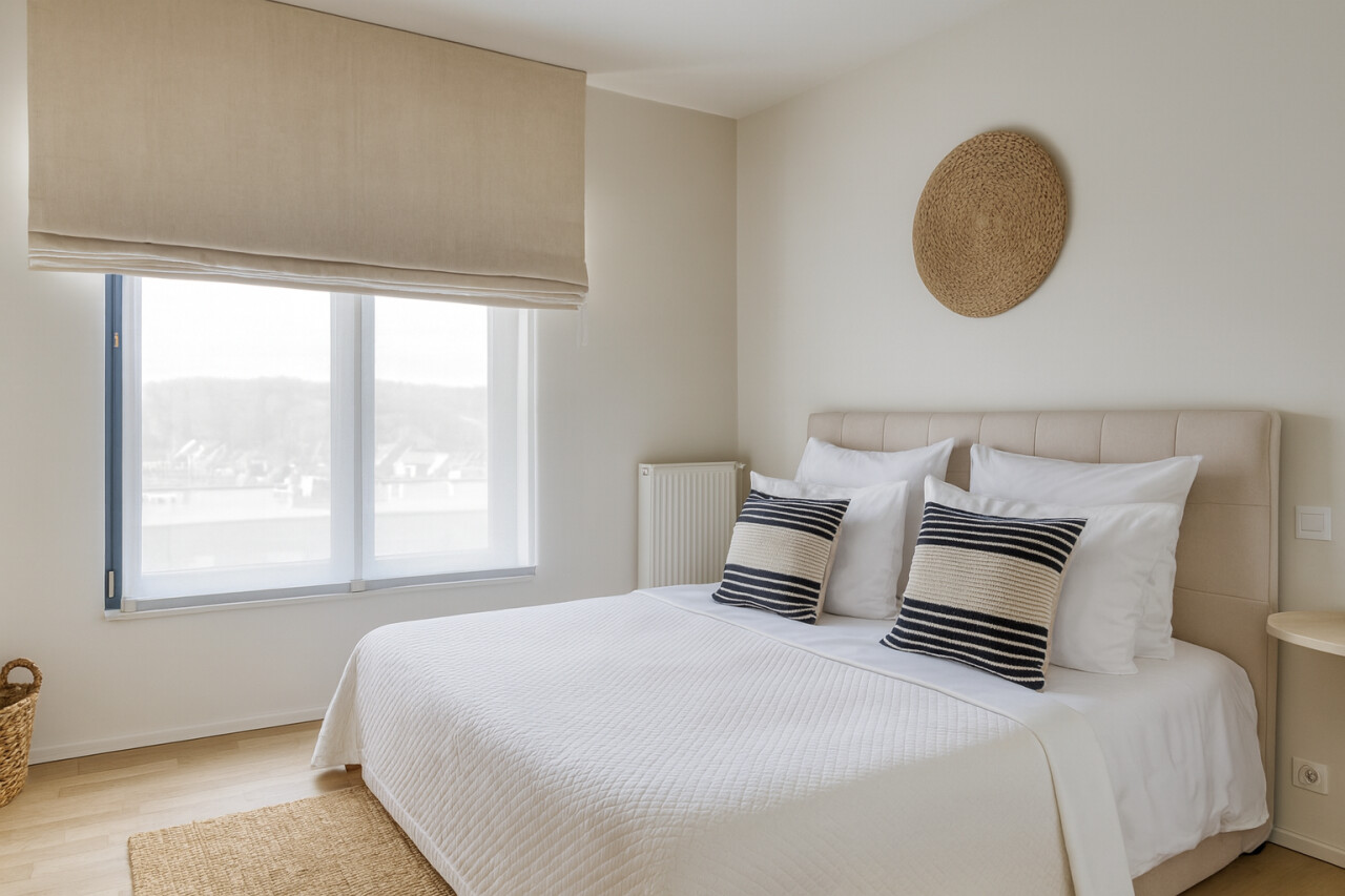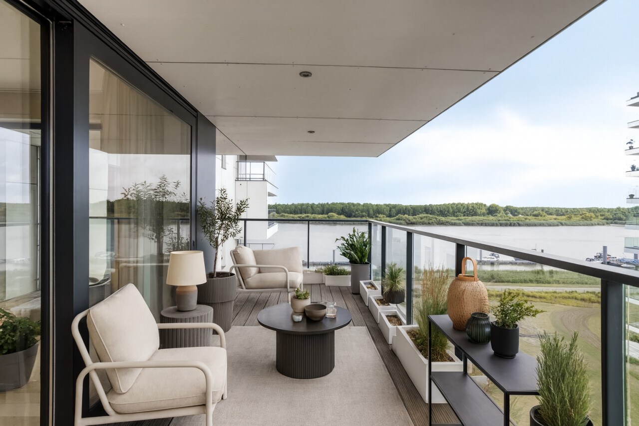 Het absolute pronkstuk van dit appartement is het royale terras, perfect georiënteerd en met een panoramisch uitzicht op het water — een zeldzame troef.