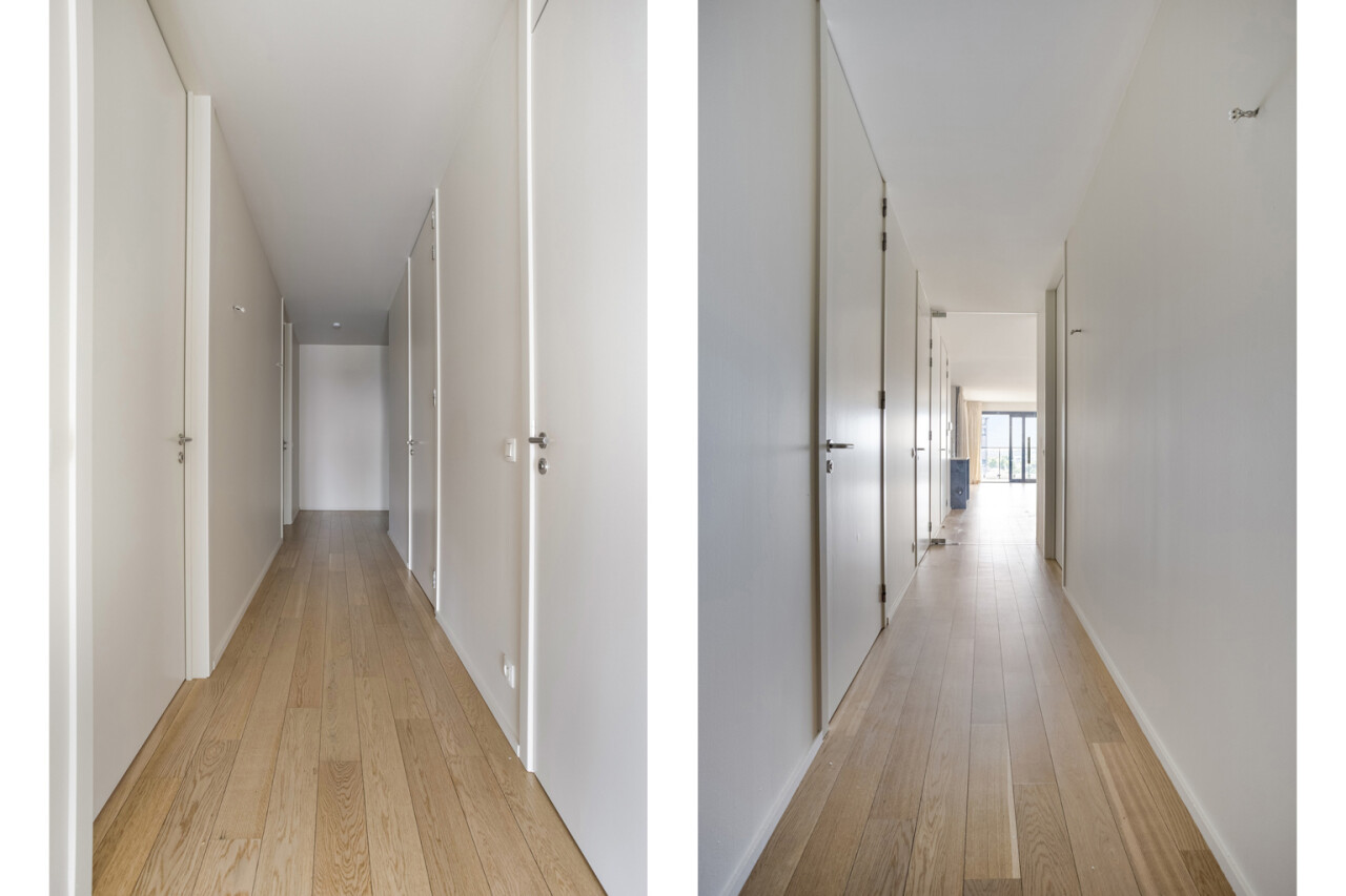 Bij het betreden van het appartement komt u in een ruime inkomhal die toegang biedt tot alle vertrekken.