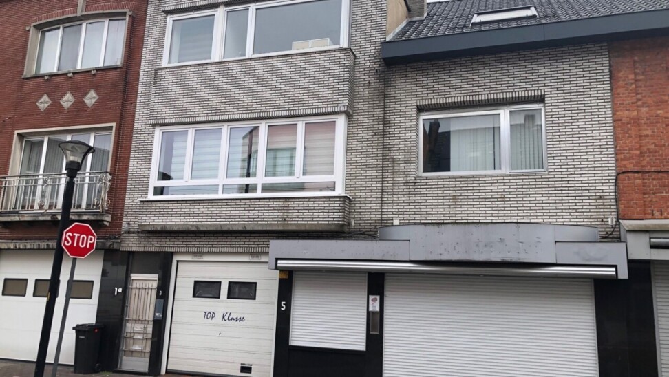 Traphal naar magazijn: 9m² op tegelvloer en voorzien van een uitgietbak + aansluiting wasmachine