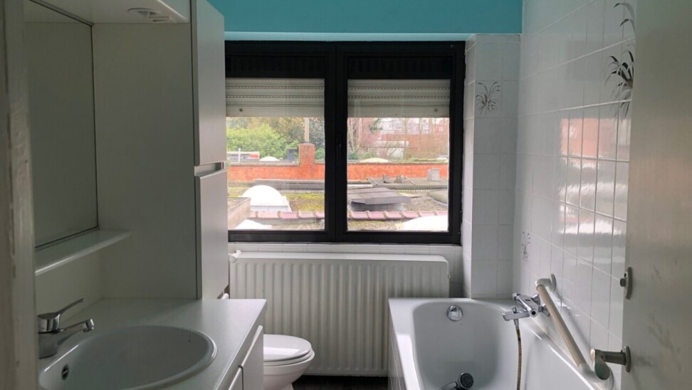* badkamer: 5,5m² op vinyl en voorzien van een ligbad, toilet, badkamermeubel met enkele wastafel
