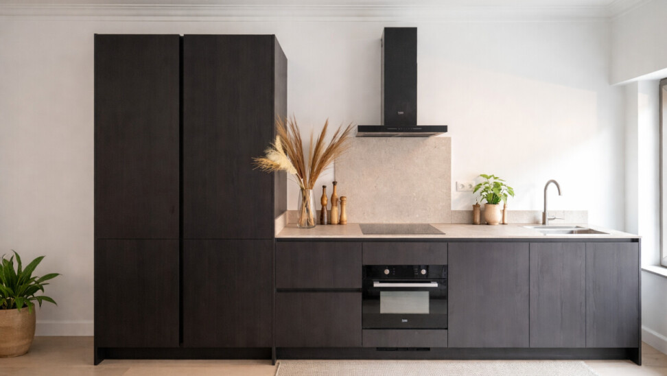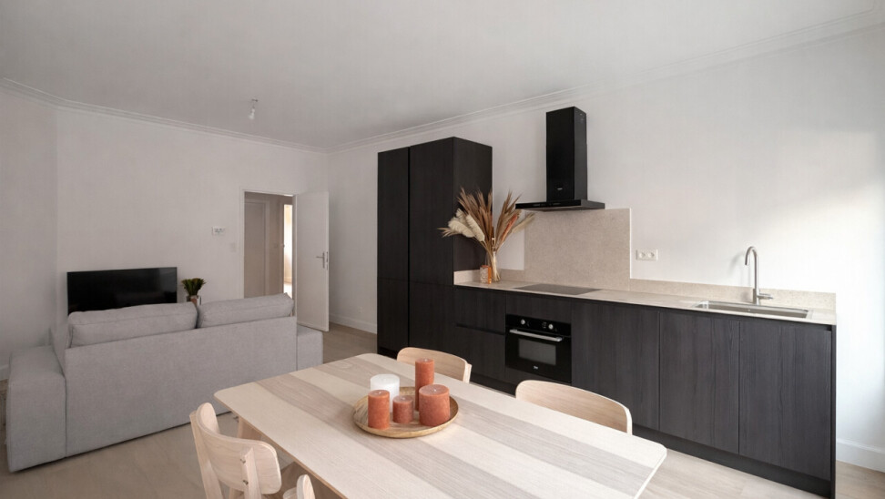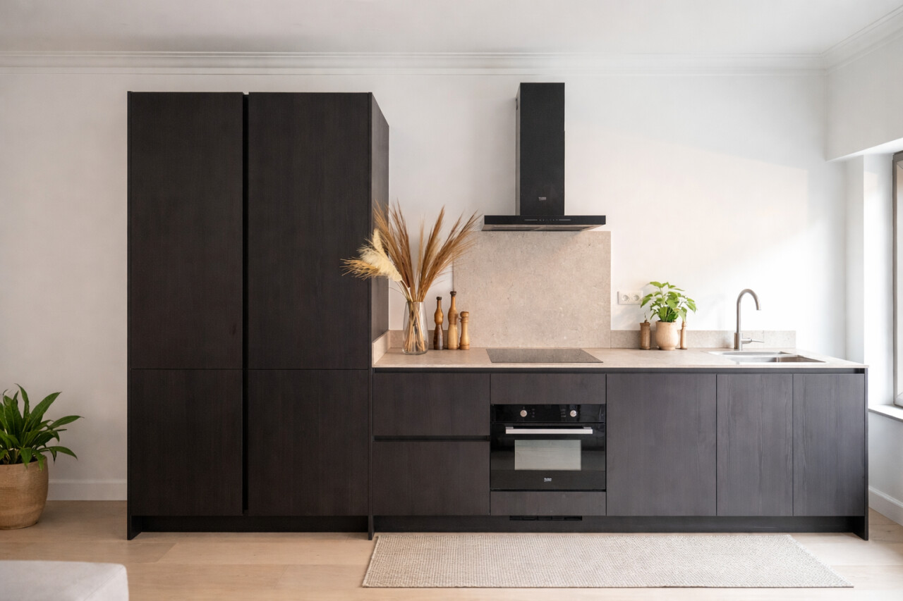 Aan de linkerzijde komt u in de lichtrijke leefruimte met open keuken, waar gezellig wonen centraal staat en waar voldoende plaats is voor een comfortabele zithoek en eetruimte.