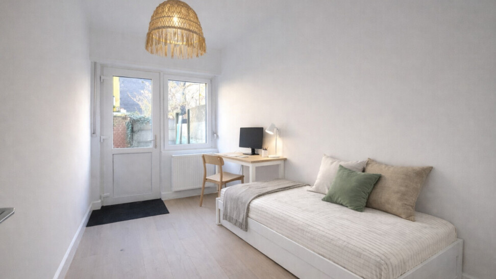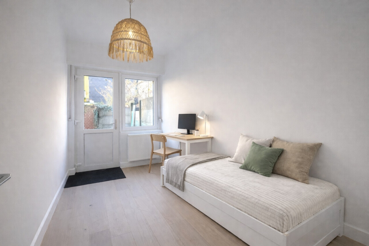 Verder beschikt het appartement over een zeer ruime masterbedroom en een tweede slaapkamer, die ook perfect kan dienen als dressing, bureau of hobbyruimte. Vanuit deze kamer heeft u toegang tot de gezellige stadstuin.