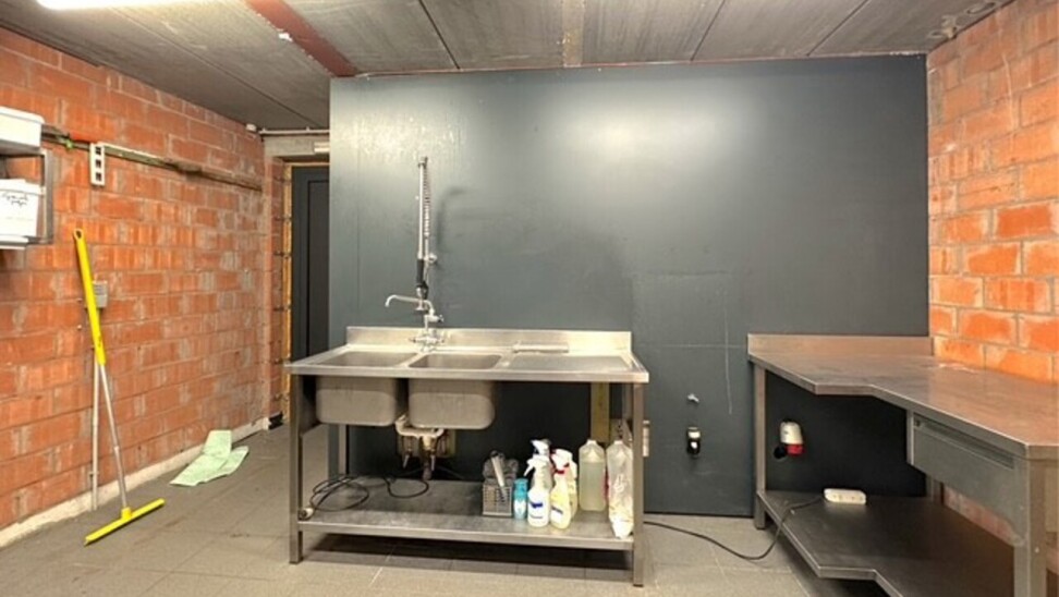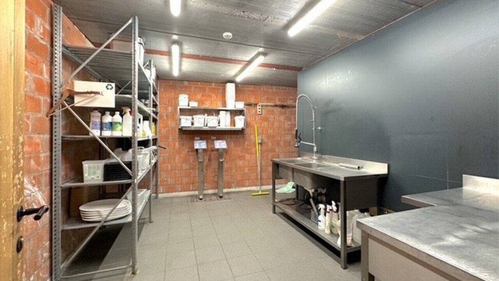 Ruime keuken voorzien van aparte koelcel en aparte afwasruimte.