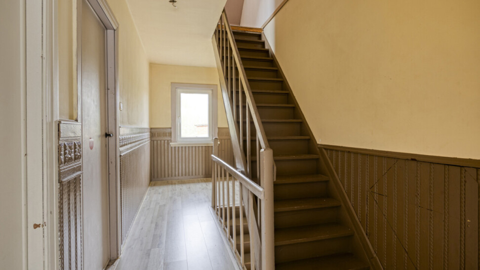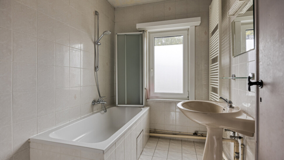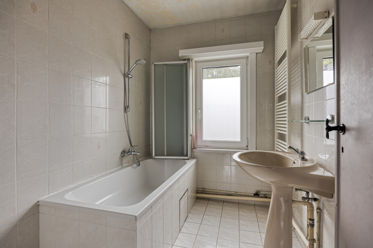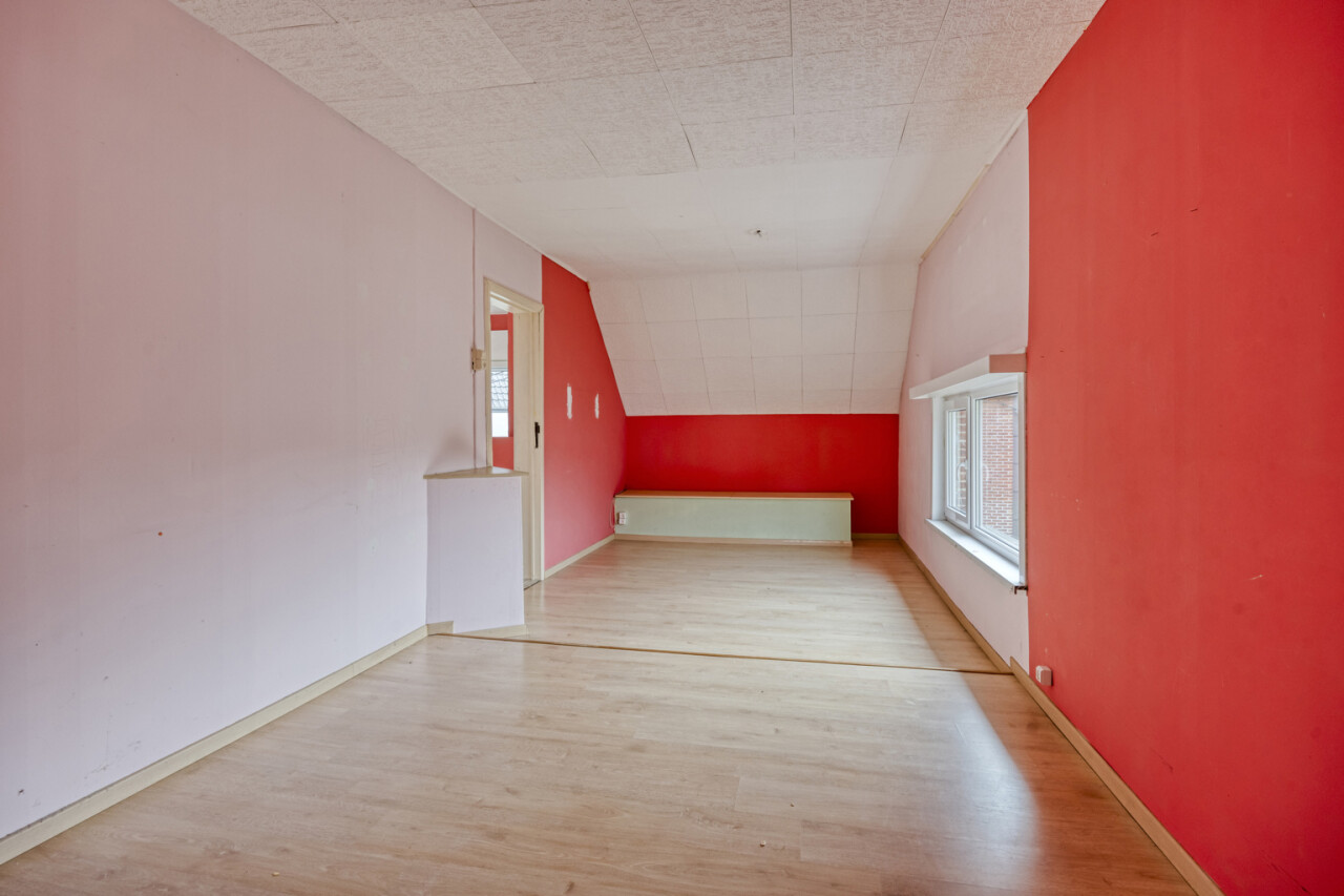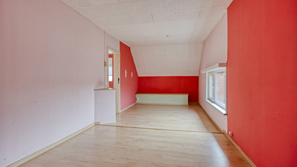 Op de eerste verdieping ontdekken we drie ruime slaapkamers en een badkamer. De zolderverdieping werd omgetoverd tot een vierde, bijzonder ruime slaapkamer — perfect als master bedroom, hobbyruimte of bureau.