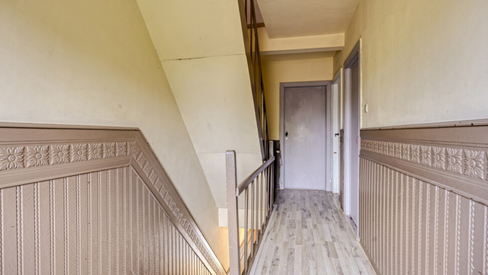 We betreden de woning via de ruime inkomhal, die toegang biedt tot de gezellige leefruimte met veel natuurlijke lichtinval. Aansluitend vinden we de ruime keuken, die uitnodigt tot het creëren van een warme gezinsplek. Op het gelijkvloers bevinden zich verder nog een praktische berging, een gastentoilet en een inpandige garage — handig voor wie houdt van orde en comfort.