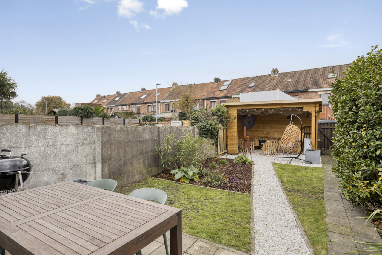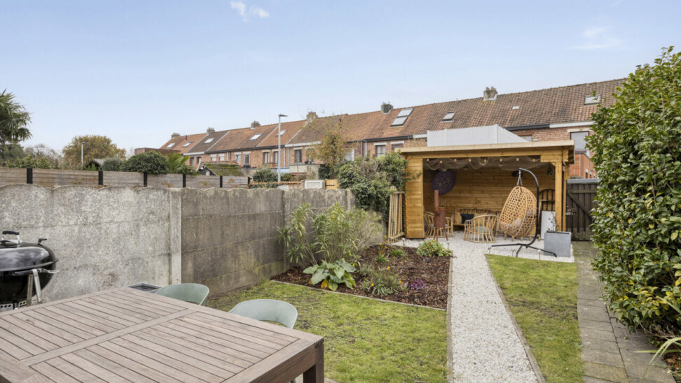 Buiten geniet je van een supergezellige, goed georiënteerde tuin met een praktisch tuinhuis/aanbouw, ideaal voor fietsen en tuingerief. Achteraan bevindt zich een super gezellige pergola en een goed georiënteerd terras, perfect om gedurende de dag optimaal van de zon te genieten.