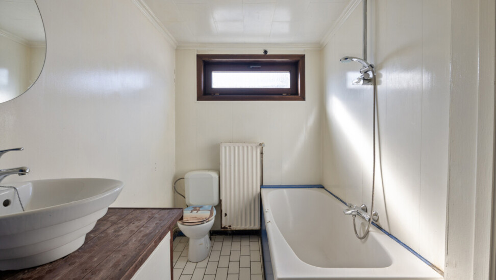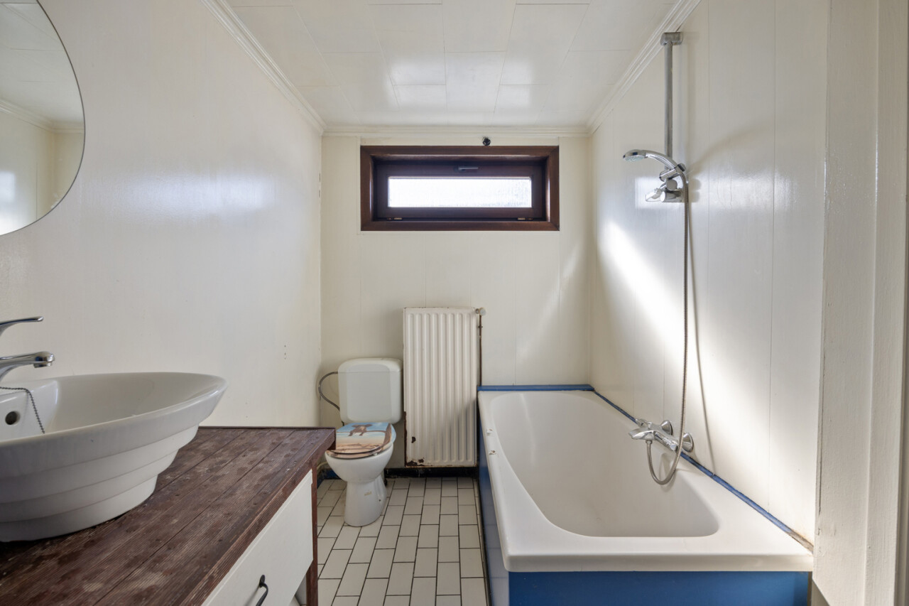Bij het betreden van de woning komen we in de aangename leefruimte, die meteen een warm en huiselijk gevoel uitstraalt. Aansluitend bevindt zich de praktisch ingerichte keuken met achteraan de badkamer.