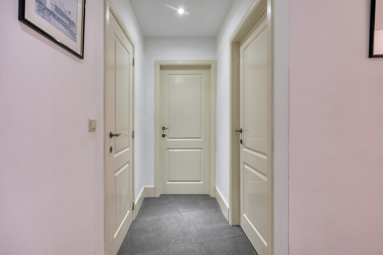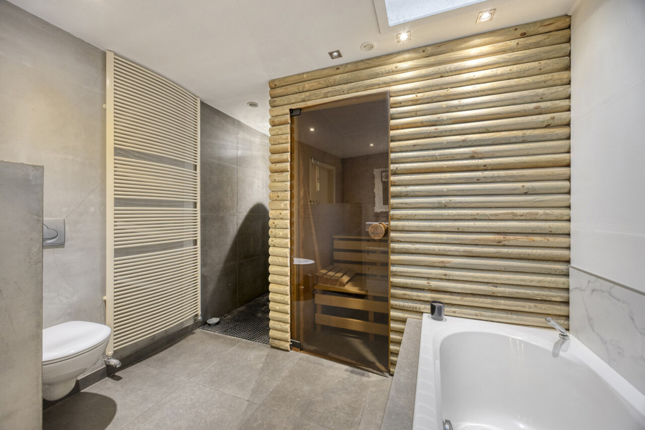 U betreedt de woning via een ruime inkomhal met aansluitend een praktische berging en kelder. Op het gelijkvloers bevindt zich een royale badkamer met sauna, ideaal voor totale ontspanning. Verder beschikt deze verdieping over twee ruime slaapkamers, beide met een mooi zicht op de Schelde. Aansluitend is er een stijlvol ingerichte dressing, functioneel ingedeeld en een duidelijke meerwaarde voor het dagelijkse comfort.